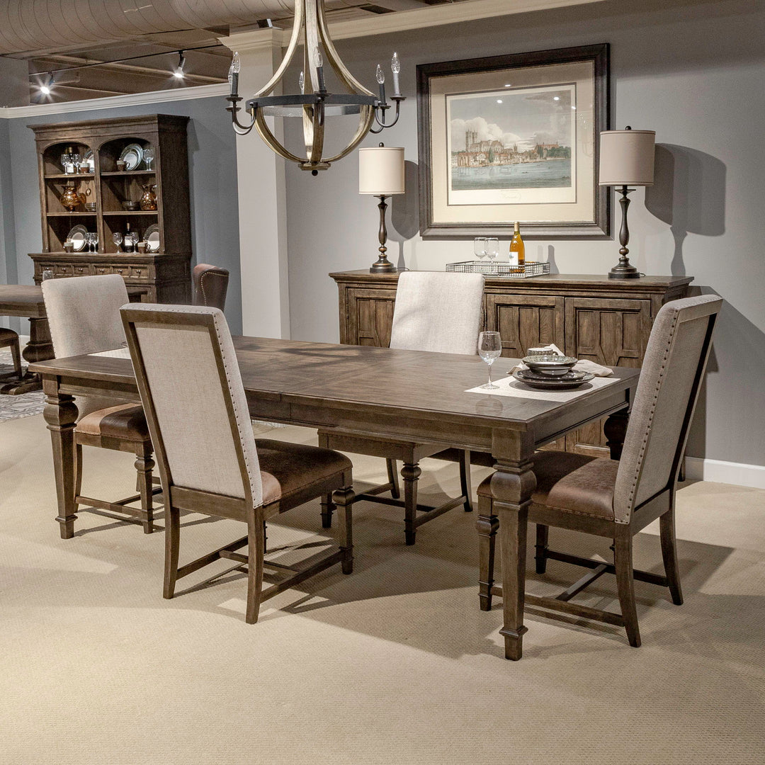 Paradise Valley - 5 Piece Pedestal Table Set (Upholstered Side Chairs) - Dark Brown