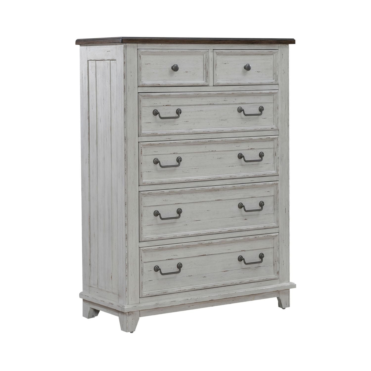 Cottage & Farmhouse Living strikes the perfect balance of life on the coast and a comfy home tucked away in the hills. It is defined by embracing comfort with a clean look with graceful lines while maintaining a timeless, eclectic feel. River place creates an inviting airy atmosphere in your home while providing comfort in your own private getaway. A collection that offers timeworn finishes in a two toned combination with traditional silhouettes for a perfect pairing.
