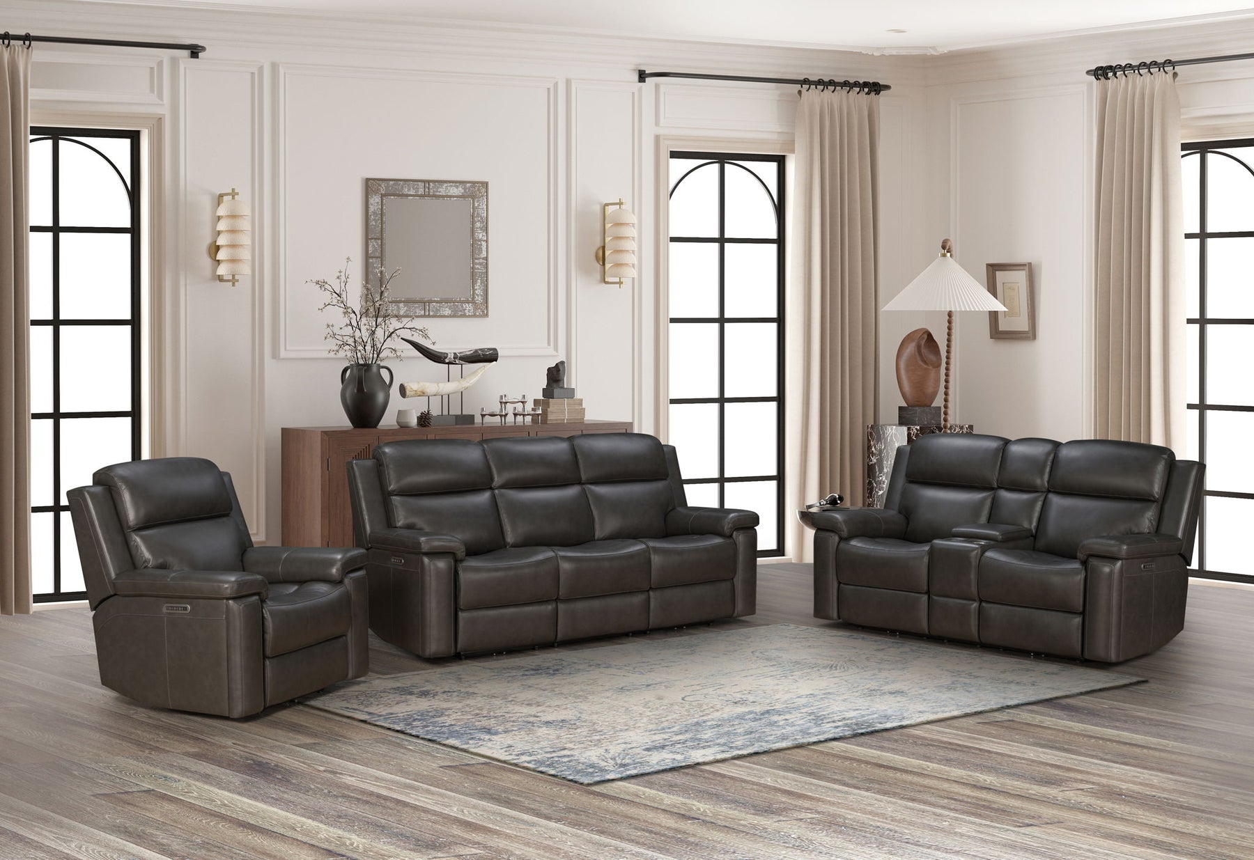 Leon - Power Sofa Recliner With Power Headrest, Power Lumbar, Heat And Massage (Dropdown Table With Smart Tabletop Control) - Smokey Gray