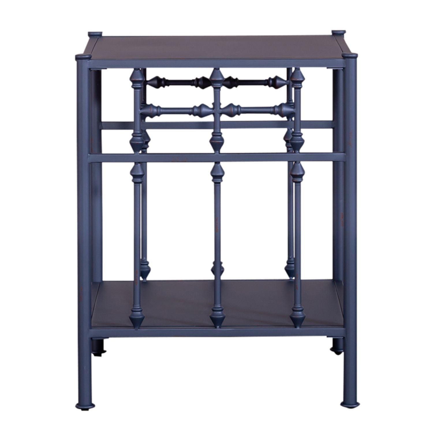 This industrial open night stand is the perfect way to enhance your room with a classic vintage style. The distressed metal finish paired with turned spindles create a truly unique look. This night stand comes in many color options, making it universal and adaptable to any space, while offering a unique designer look.