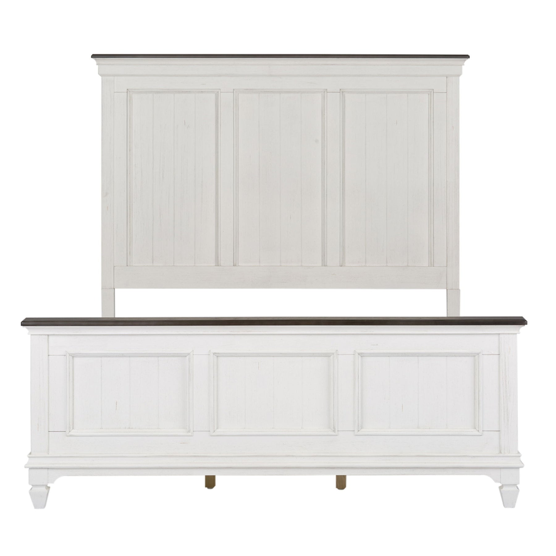Create a classic look with a casual feel using the Allyson Park panel bed. The two-toned wire brushed white finish with charcoal tops creates a cottage style that works anywhere from the beach to the mountains. Crafted with pine solids and veneers with cathedral white oak tops, this piece features a center slat support system, bolt on rails, bead molding, and charcoal grey cap rails.