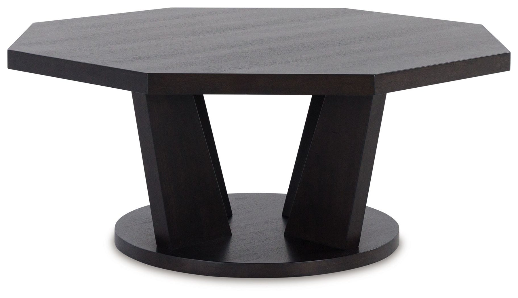 Chasinfield - Octagon Coffee Table - Dark Brown 43.25"W x 43.25"D x 17.13"H - 72.0 lb