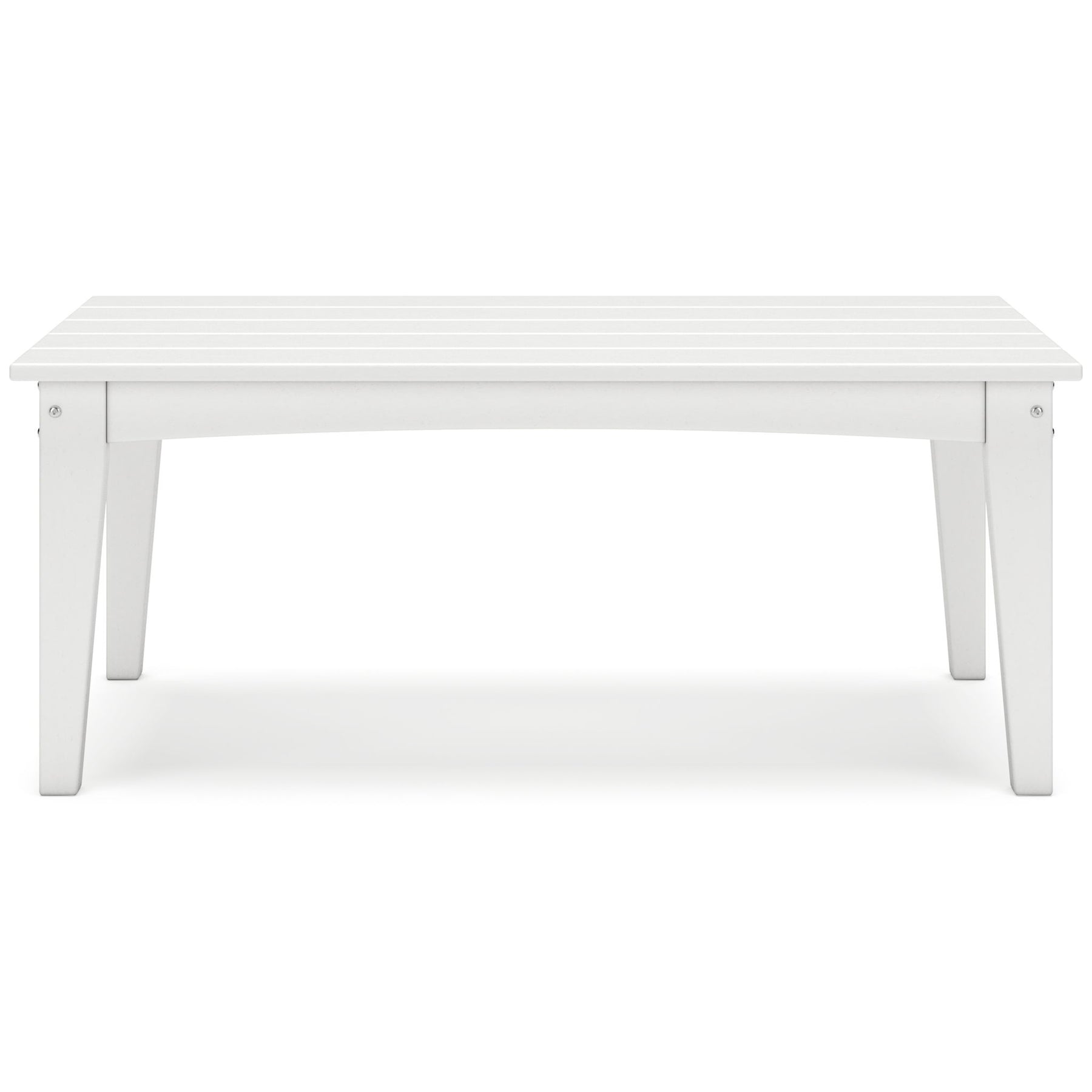 Drift into outdoor entertainment bliss with this coffee table. Dressed in a bright white for a fresh feel, it weathers sunny summer days and cozy winter nights with durable MEGA TUFF™ HDPE material. When it comes to form and function, the table's rain-shedding slatted design simply goes with the flow. Use it to hold outdoor decor, drinks or snacks.