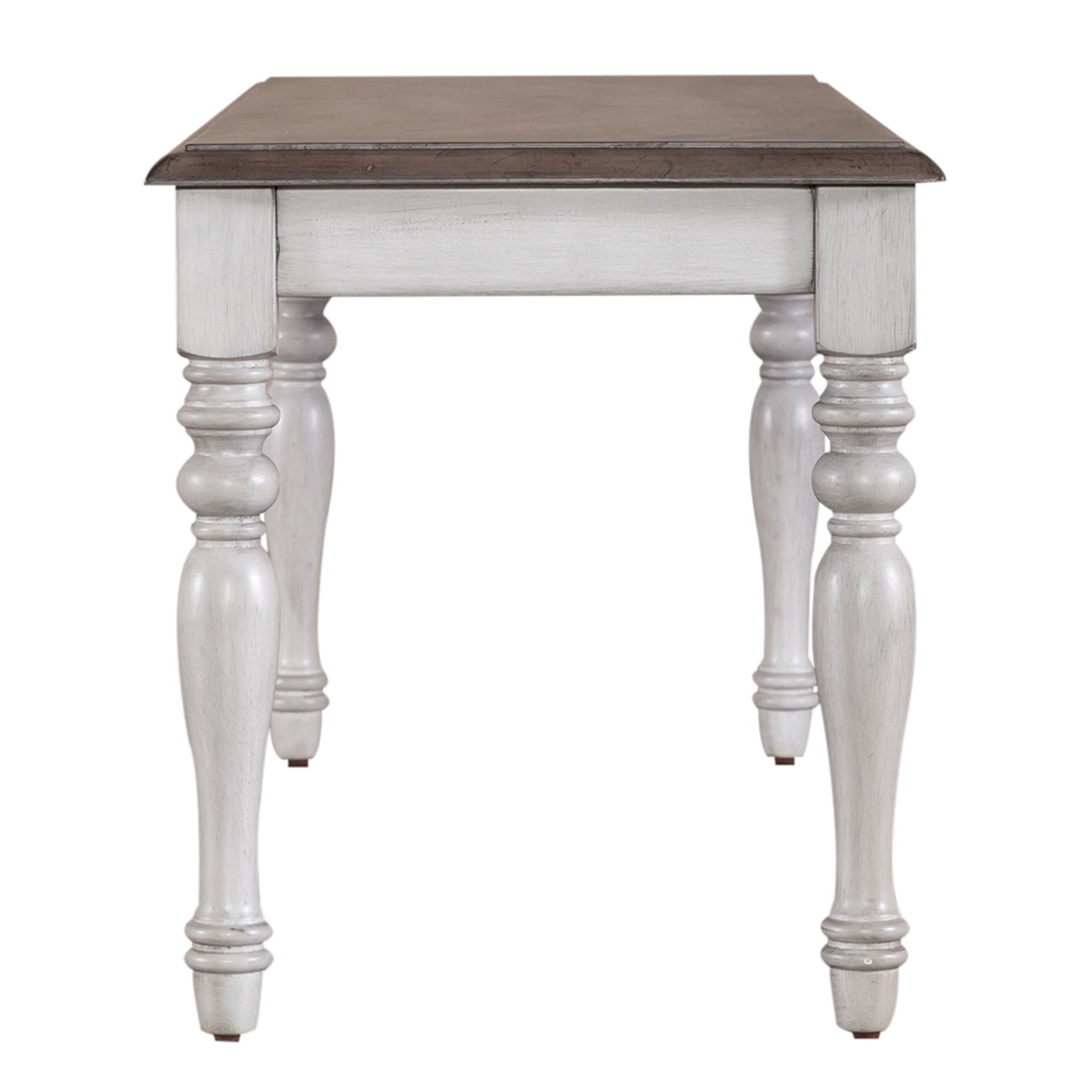 Sit in comfort and style with the Ocean Isle bench. Crafted of rubberwood solids, this piece features an antique finish with weathered pine, nylon chair glides to protect your flooring, a fully wooden seat, two tone finish, and is anchored by heavily turned legs. This piece comes in multiple finishes, sure to be a great addition in any home. Elegantly styled and casually proportioned, this bench works in a dining room or kitchen dining combination effortlessly.
