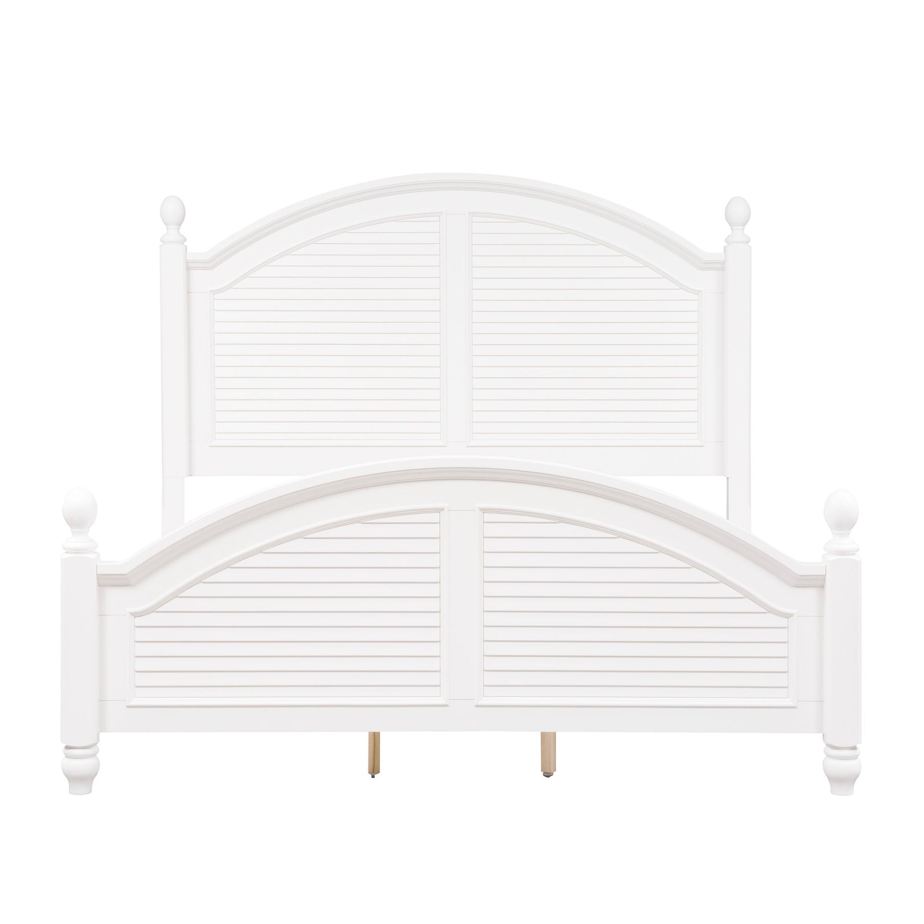 Have sweet dreams in this cottage style Summer House poster bed into your room. The oyster white finish is accented by louvered panels, arched crown molding, and egg-shaped finials, adding to the cottage charm. Made of pine and poplar solids, this bed features bolt-on rails and a center supported slat system, making this a sturdy and reliable bed.