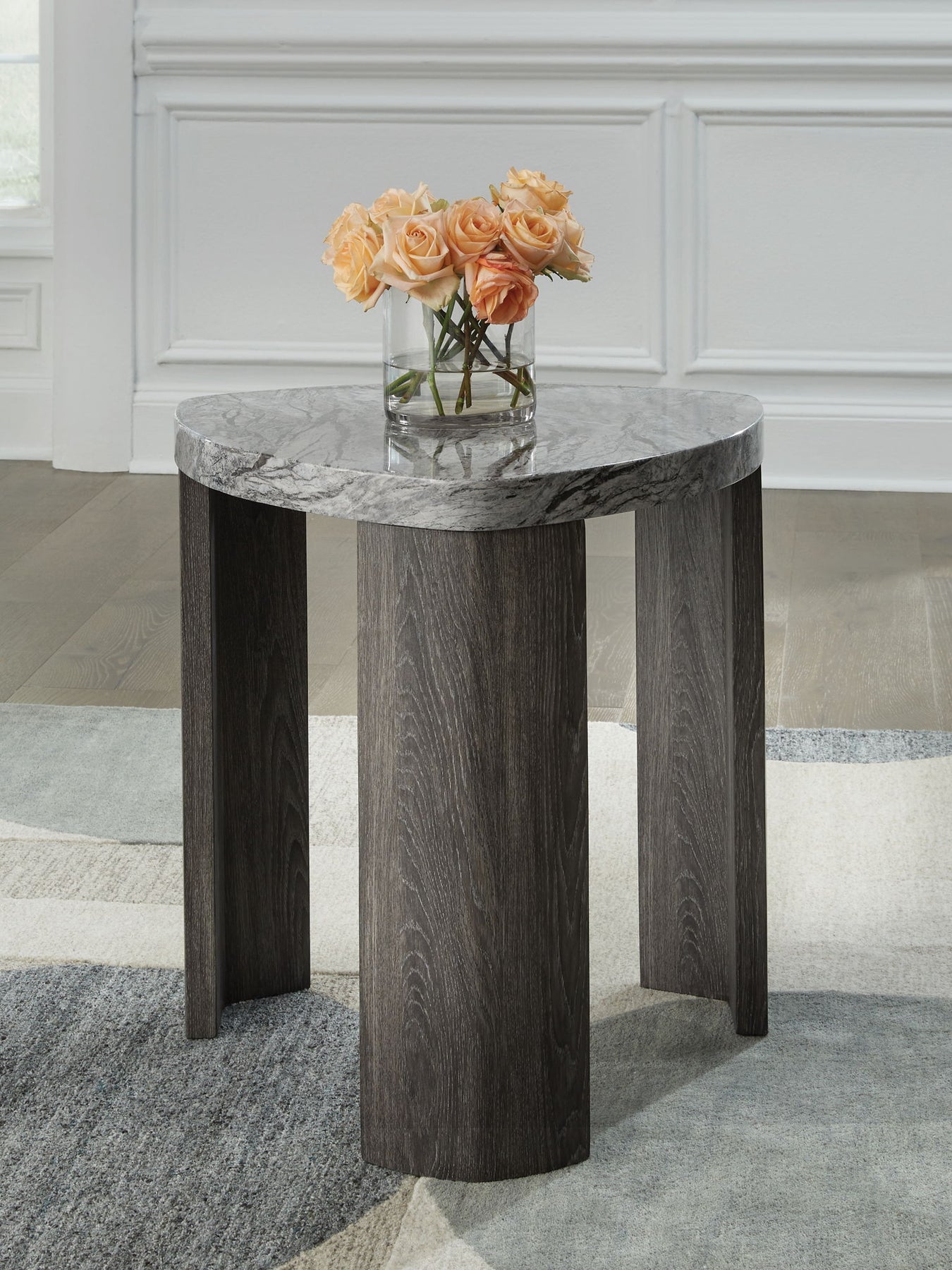 Striking contemporary form, meet can’t-miss function. This end table pairs the look of faux gray marble with a weathered gray wood grain for a simply chic approach to monochromatic style. Perfect as a perch for remotes, a lamp or morning coffee, it’s a luxe take on everyday living.